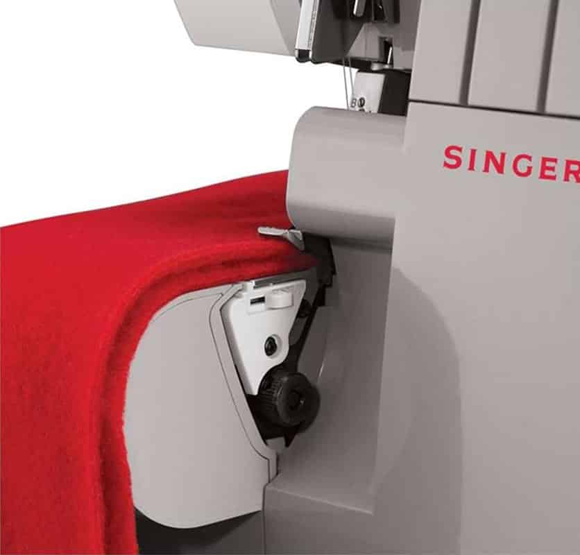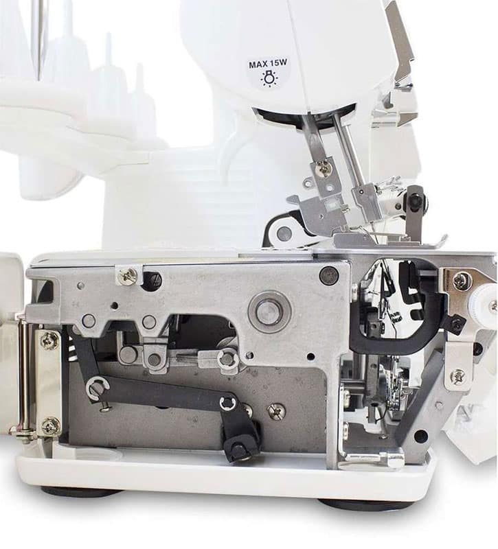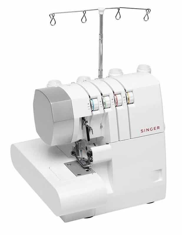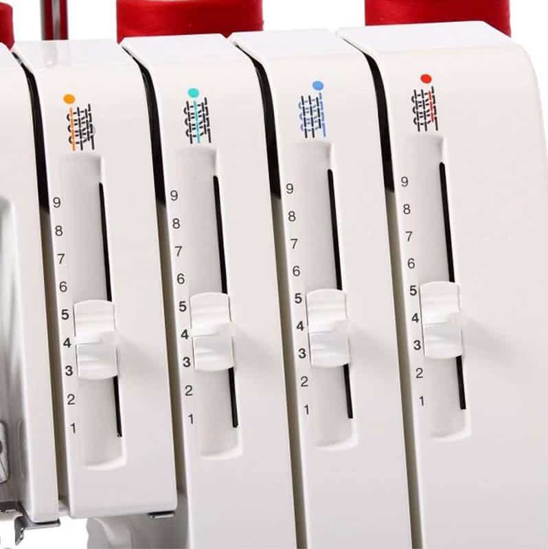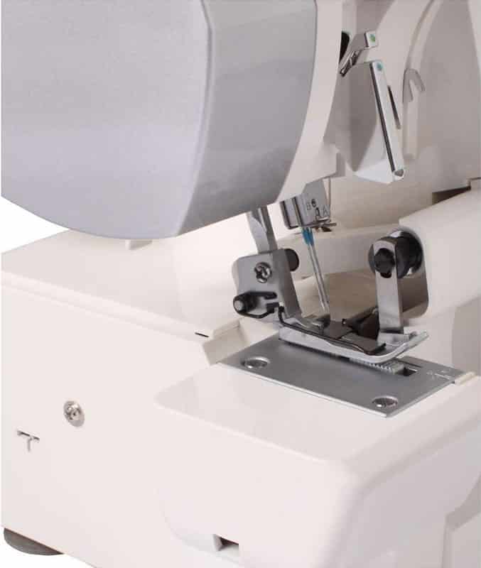 questa è una macchina taglia e cuci che può funzionare con tre o quattro fili. Entrambe le cuciture saranno adatte anche a tessuti stretch, tuttavia la cucitura a quattro fili ti darà un risultato più resistente e può essere utilizzato anche sull’abbigliamento intimo. La maggior parte di queste macchine realizza l’orlo arrotolato solo spostando una levetta.