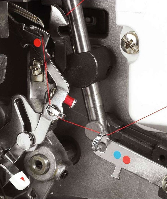 questa macchina esegue un vero punto di sicurezza utilizzando 4 fili o un bordo rifinito con due soli fili perfetto per materiali molto leggeri. Per ogni operazione vengono utilizzati due fili ed è possibile utilizzare la macchina per creare ogni punto separatamente dall’altro.
