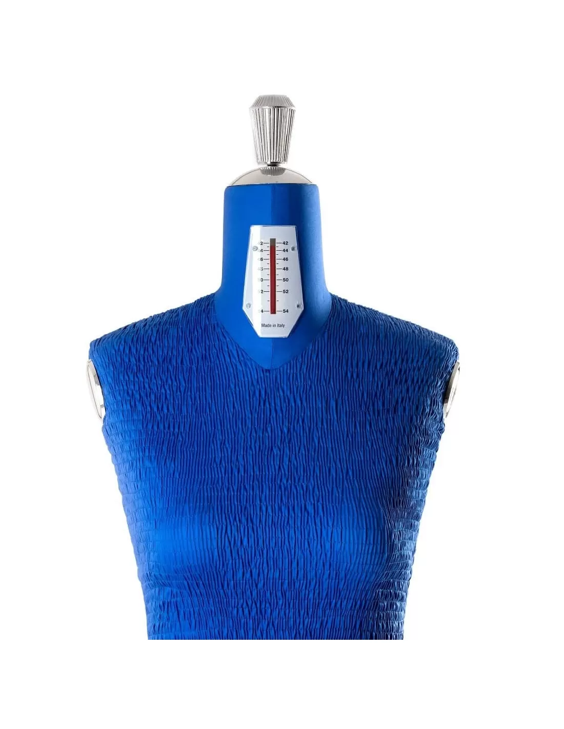 The tailor's dummy is equipped with a precise mechanism that allows the adjustment according to the chosen size in a proportioned way, just rotate the knob positioned at the top to obtain the desired size that will be highlighted on the mark placed on the neck of the bust.