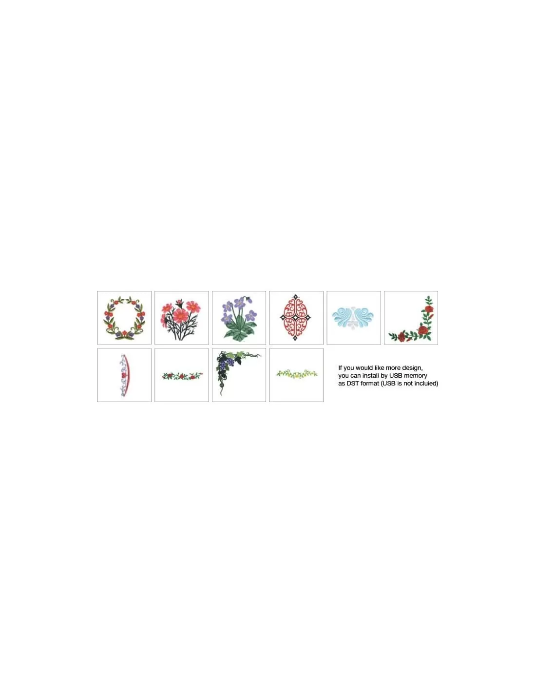 With this Embroidery unit also you can install other designs (DST format) by USB memory.