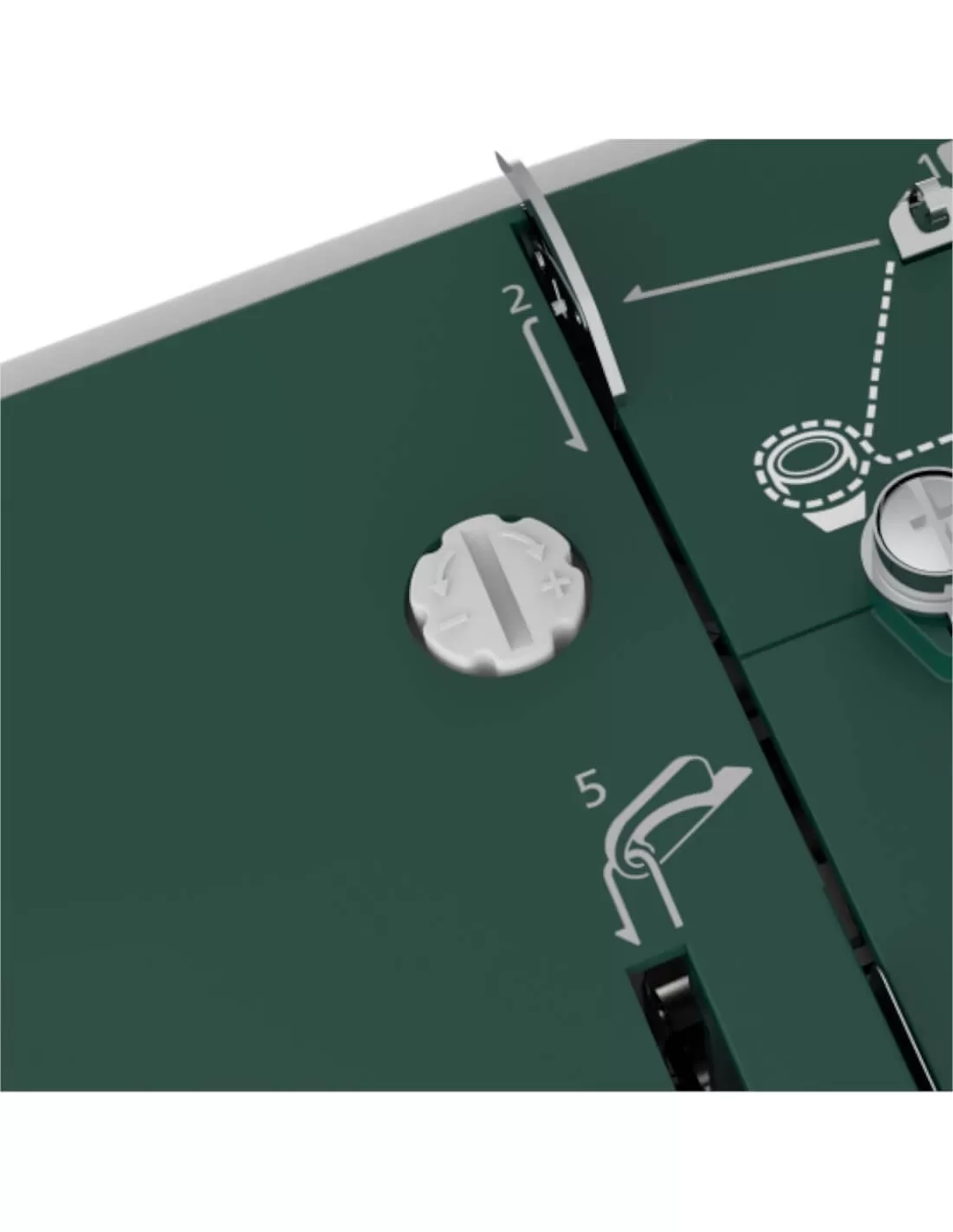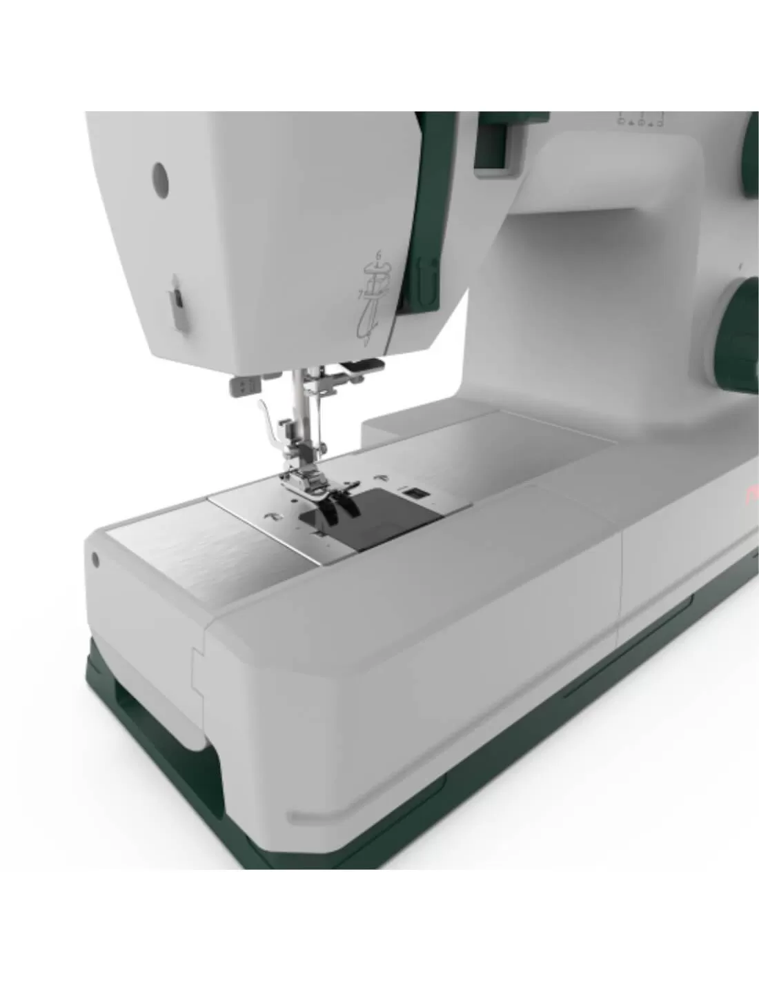 The lever for disengaging the feed dog is easily accessible on the back, essential for sewing buttons, for darning, embroidery and free-hand sewing and for patchwork enthusiasts.