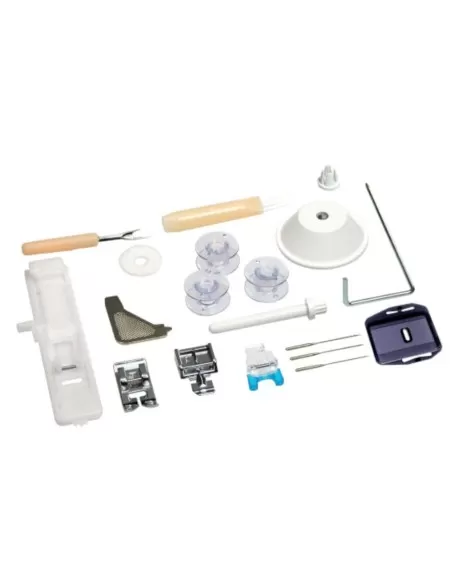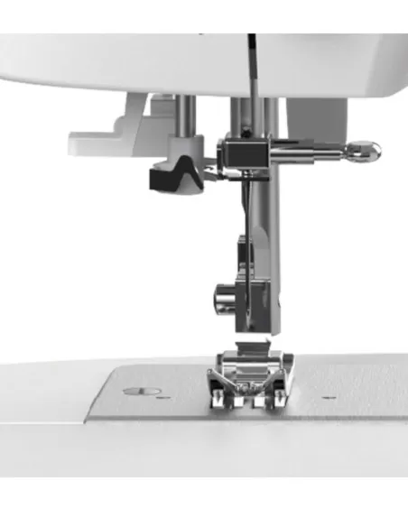 Needle penetration on every material, needle pressure adjustable, steel hook, 2 bobbin stands for sewing with the double needle, 1 step buttonhole, needle threader, free harm, stretch stitches for sewing even elastic materials like jersey, fleece, etc.