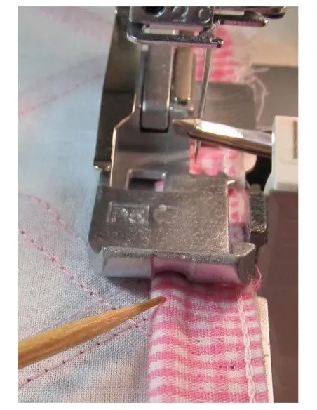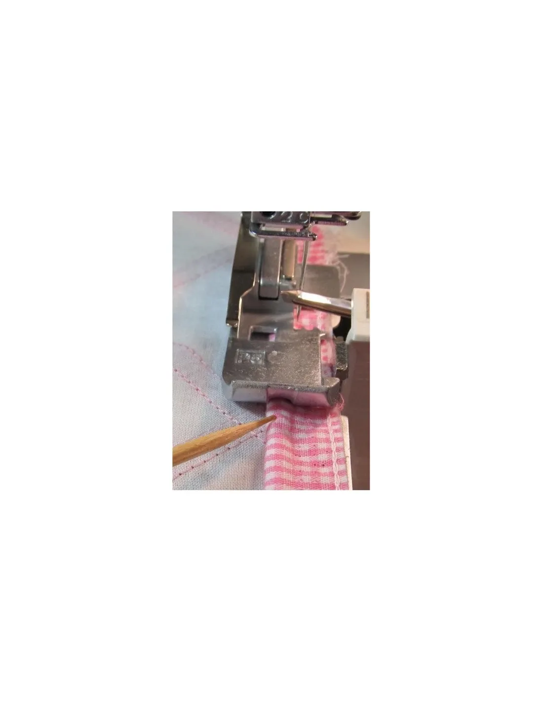 The cording foot allows you to apply and finish cords (3 mm) to your garments as pillows etc.. Supplied with quick-snap attach.