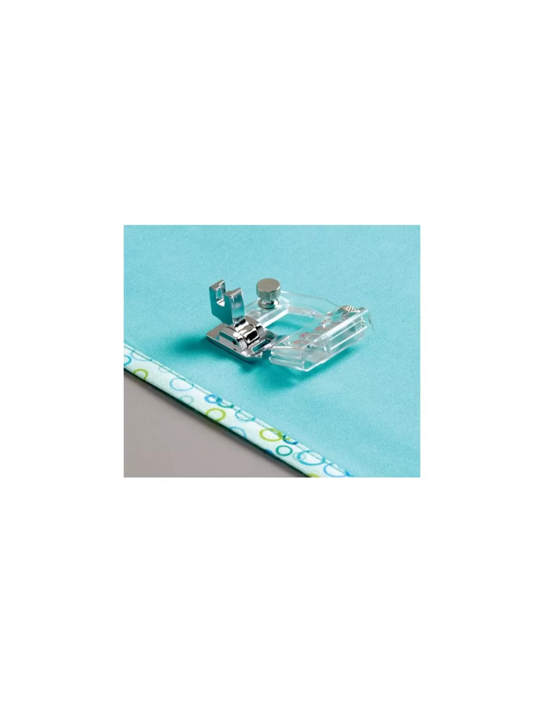 This incredible foot will save you hours of work on your next binding project. Transform raw bias strips into perfectly precise binding. The bias binder foot will fold, feed, flatten, and finish your binding for you with unbelievable accuracy.