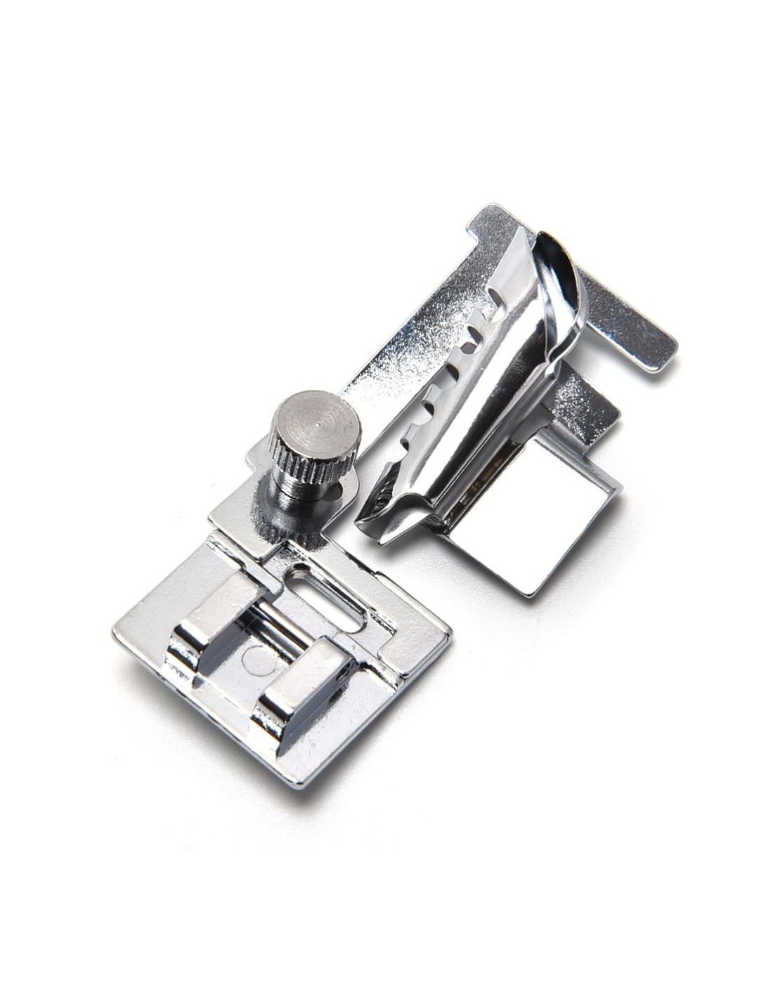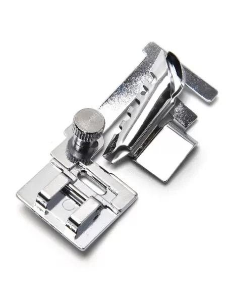 This incredible foot will save you hours of work on your next binding project. Transform raw bias strips into perfectly precise binding. The bias binder foot will fold, feed, flatten, and finish your binding for you with unbelievable accuracy.