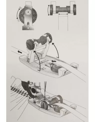 Set the numbered wheel on the elastic foot by aligning the number with the small metal arrow. The higher the number, the more the elastic will be stretched.