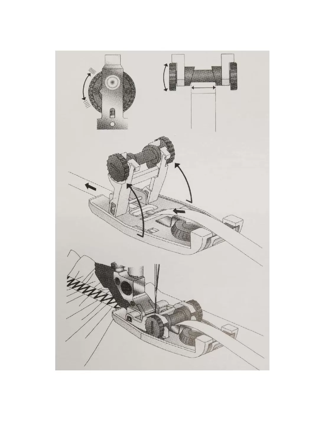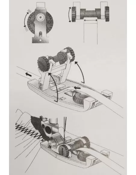 Insert the elastic foot on the Pfaff sewing machine. Set the machine for a zig-zag point better if multiple. Adjusts the stitch width based on the width of the rubber band and the stitch length based on the quality of the rubber band and the amount of collection required.
