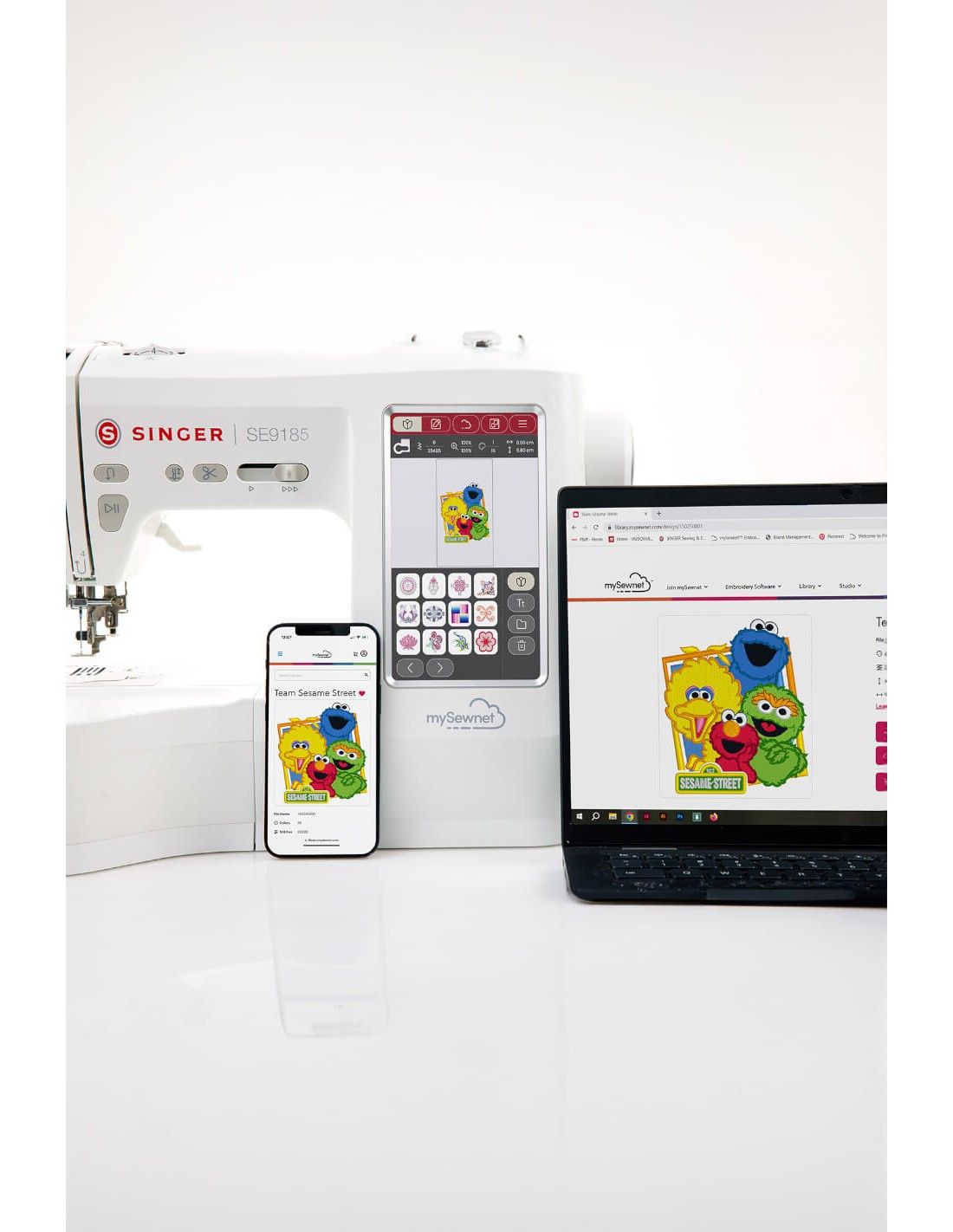 You can also purchase designs through the mySewnet library's online store and then upload them as .vp3 embroidery files to your Singer SE9185 sewing and embroidery machine via a USB stick.