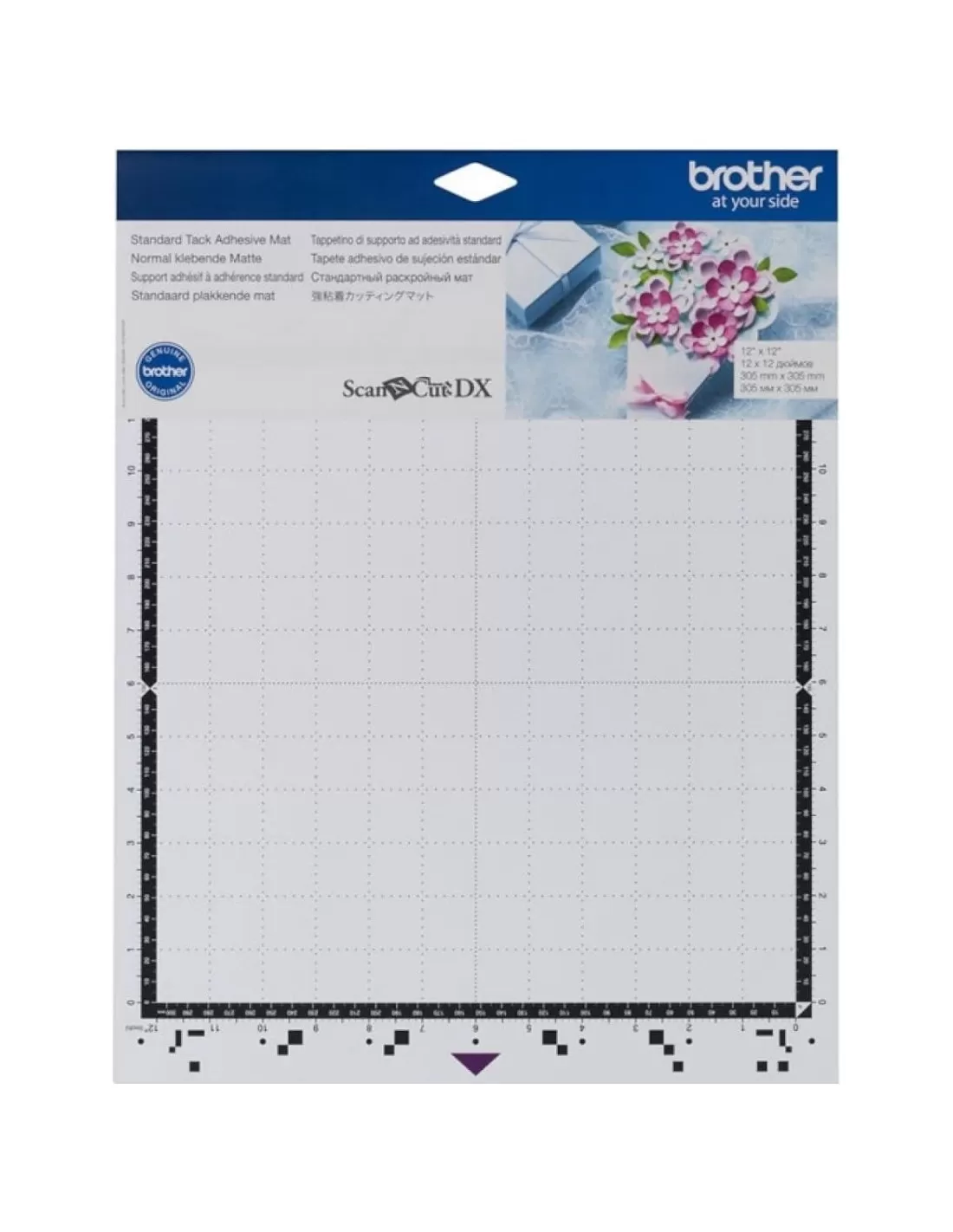 El tapete estándar para la ScanNCut Brother SDX 1200 (30,5 x 30,5 cm) ha sido estudiado para adaptarse a una amplia gama de materiales, incluido papel hecho a mano. Este tapete tiene un adhesivo que fija el material y puede usarse múltiples veces.