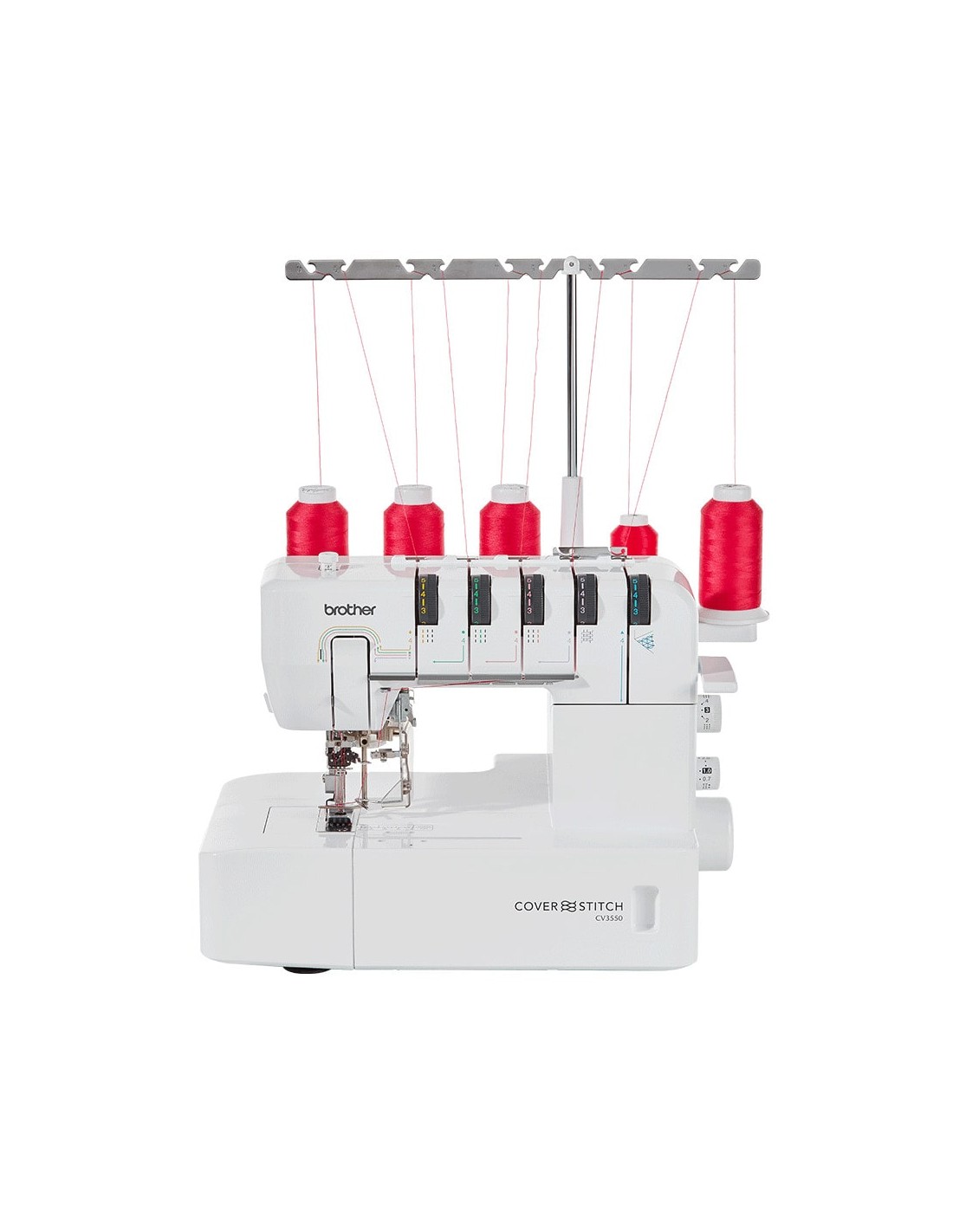 La recubridora Brother CV3550 tiene un gran espacio de trabajo de 15,5 cm, así como una estructura de brazo libre exclusiva de este tipo de máquina.
