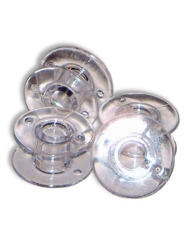 10 carretes de plástico de color claro para máquinas de coser. Tamaño (aproximadamente) 12 x 21 mm
