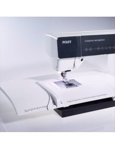 Diseñada específicamente para máquinas Pfaff, esta mesa extensible se ensambla como la caja de accesorios y aumenta enormemente el área de trabajo.