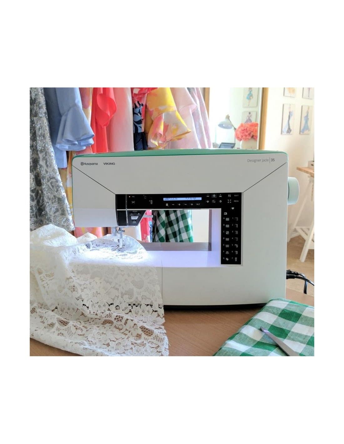 Esto nos permite ahorrar tiempo bordando. Su Husqvarna Designer Jade 35 borda más rápido que la mayoría de las otras máquinas de bordar.