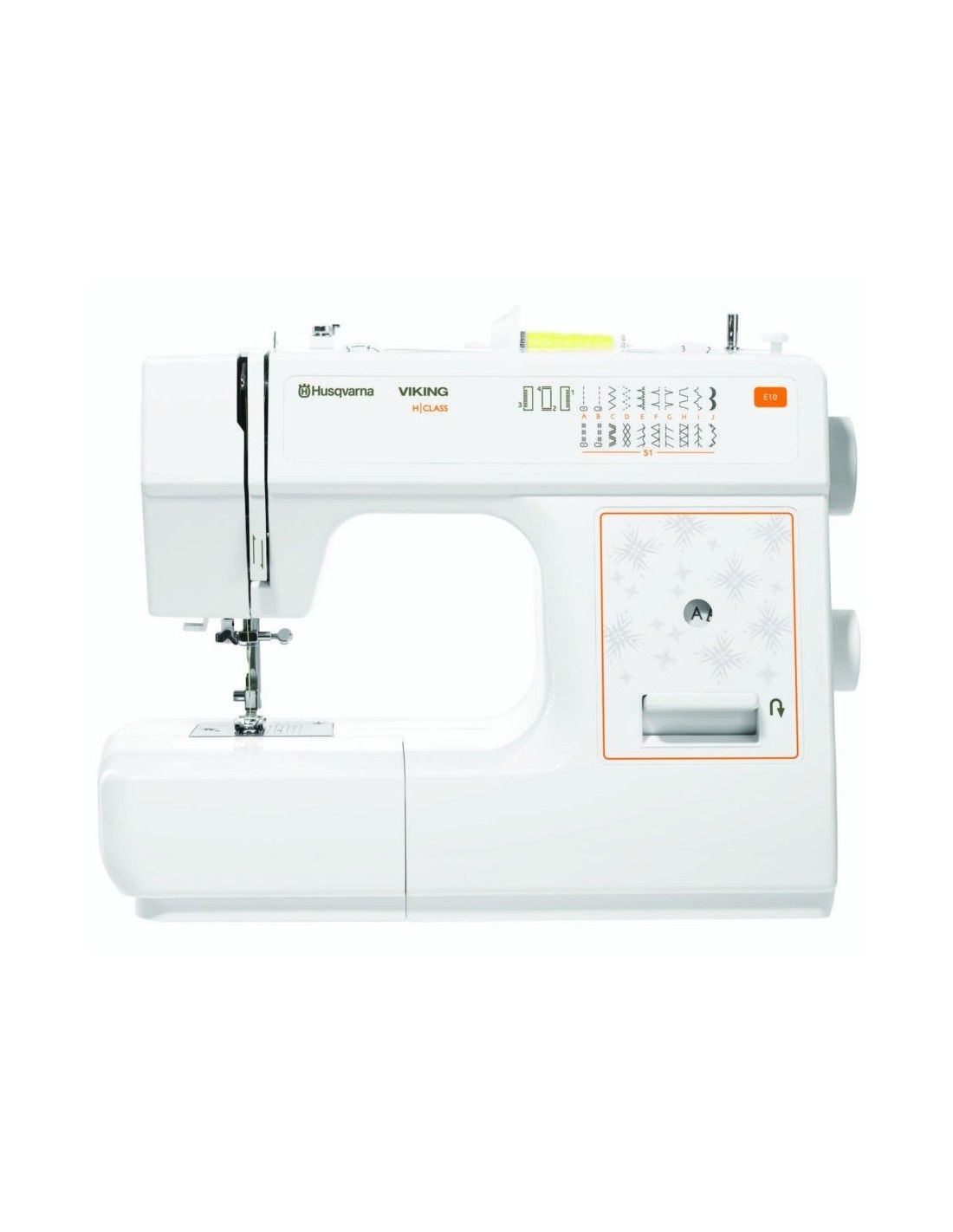 La máquina de coser Husqvarna-Viking E10 tiene 20 puntos entre, selección de puntadas decorativas fácil, práctica y flexible, posibilidad de costuras con doble aguja y dos hilos, puntos de amplitud 5 mm, devanado rápido y fácil bobinado, pedal electrónico para un control preciso de la velocidad, bajo peso y tamaño compacto.