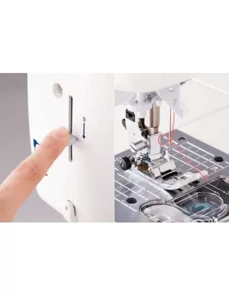 El ajuste de presión del prensatelas te permite ajustar el transporte de la tela con la presión adecuada.