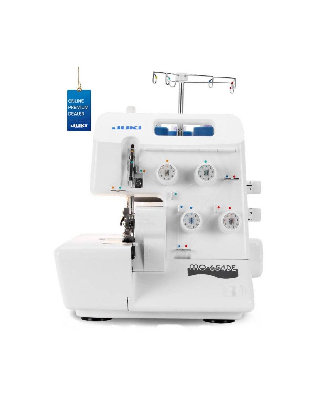 La tecnología y los materiales con los que se realizan las remalladoras Juki MO654DEN derivan de la producción de máquinas industriales, de hecho por ejemplo los 2 crochet, inferior y superior y los cuchillos de estas máquinas tienen una resistencia y durabilidad impensables para otras remalladoras no profesionales.