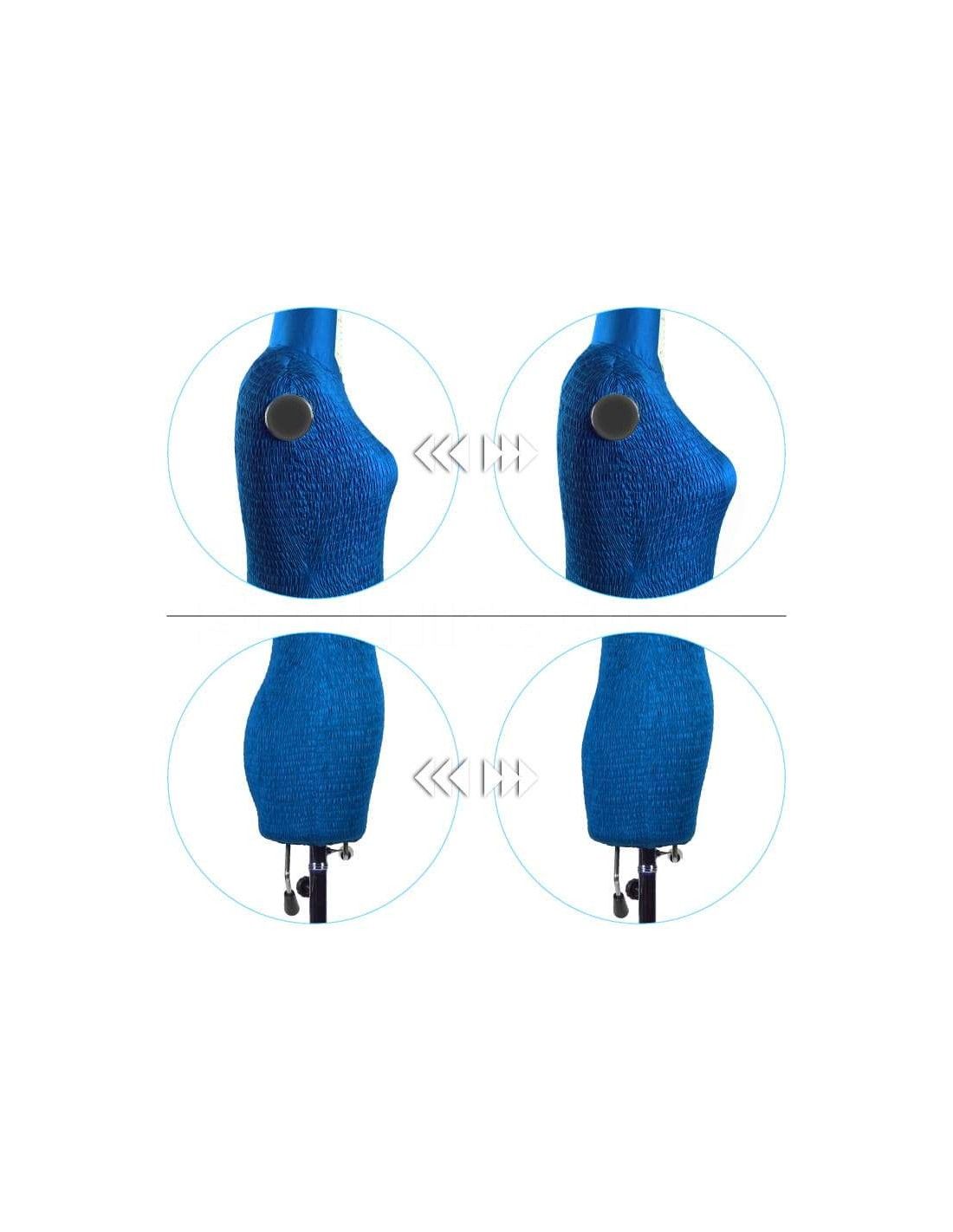 Maniquí de modista de mujer regulablerecubierto con tejido elástico resistente que permite ajustar la talla de 42 a 54 y permite fijar alfileres con facilidad y seguridad.