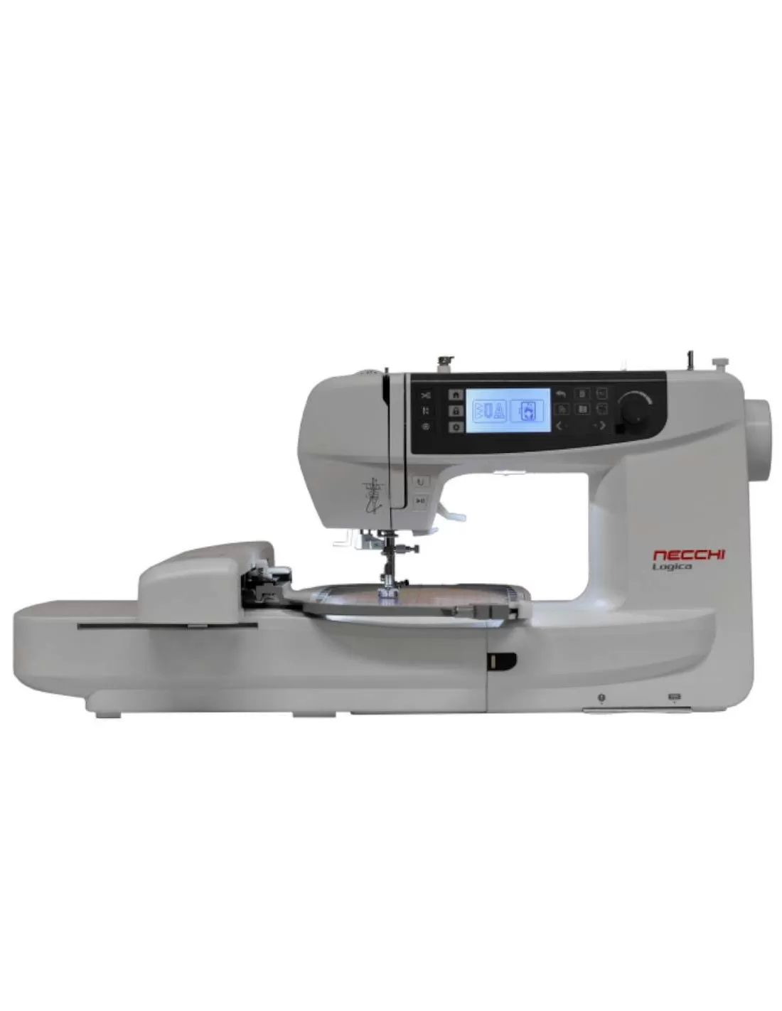 Tecnológica y multifuncional, la nueva Necchi Logica NCH01AX destaca entre las máquinas de coser electrónicas por su calidad y funcionalidad gracias a la zona de bordado que incluye dos bastidores, uno de 180x120 mm, otro de 70x50, la placa de bordado y la pantalla táctil.