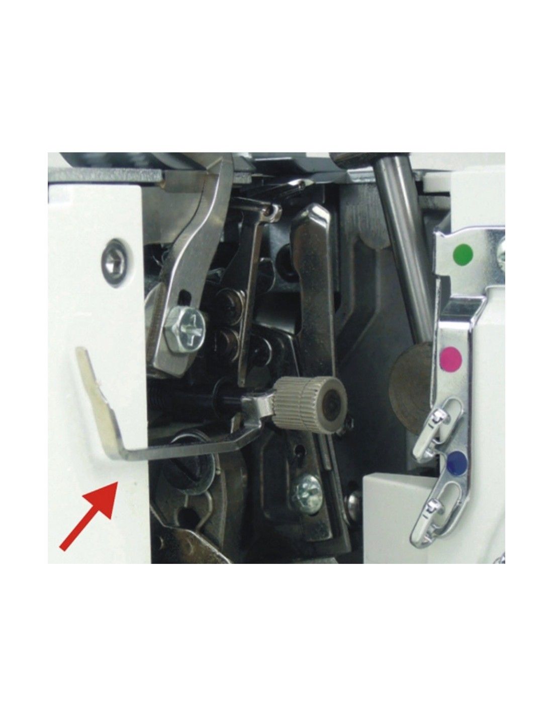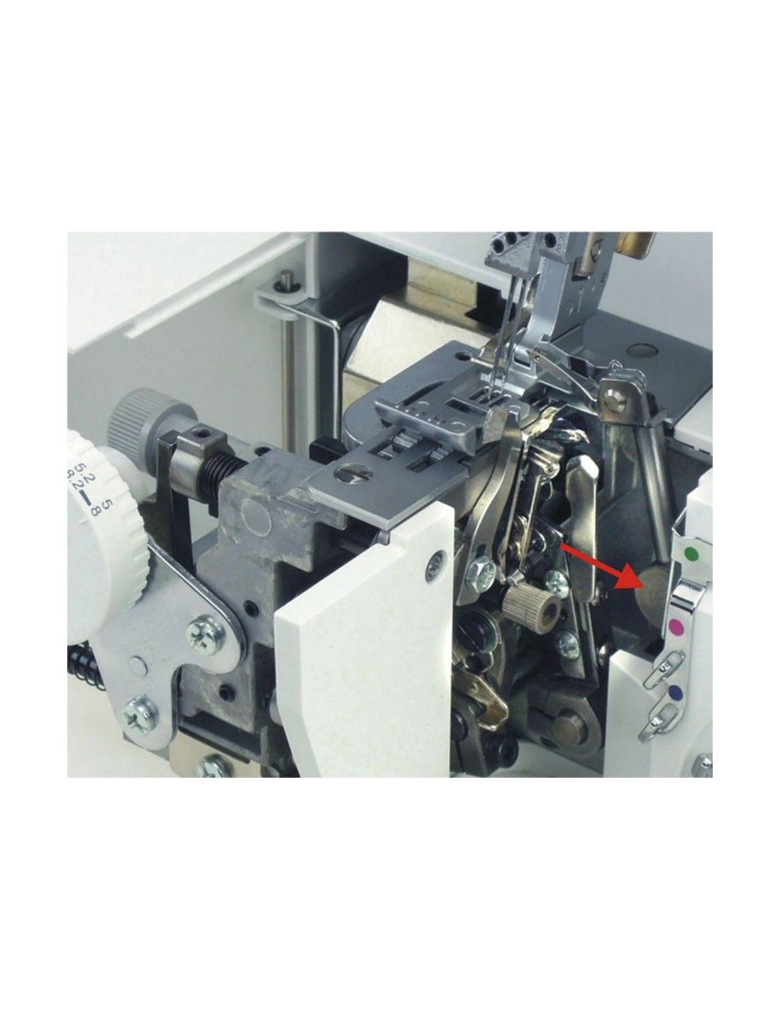La apertura de la tapa lateral izquierda permite el acceso excluyendo los dispositivos de corte y facilita el enhebrado gracias también al recorrido con recorridos de hilo facilitados por códigos de color.