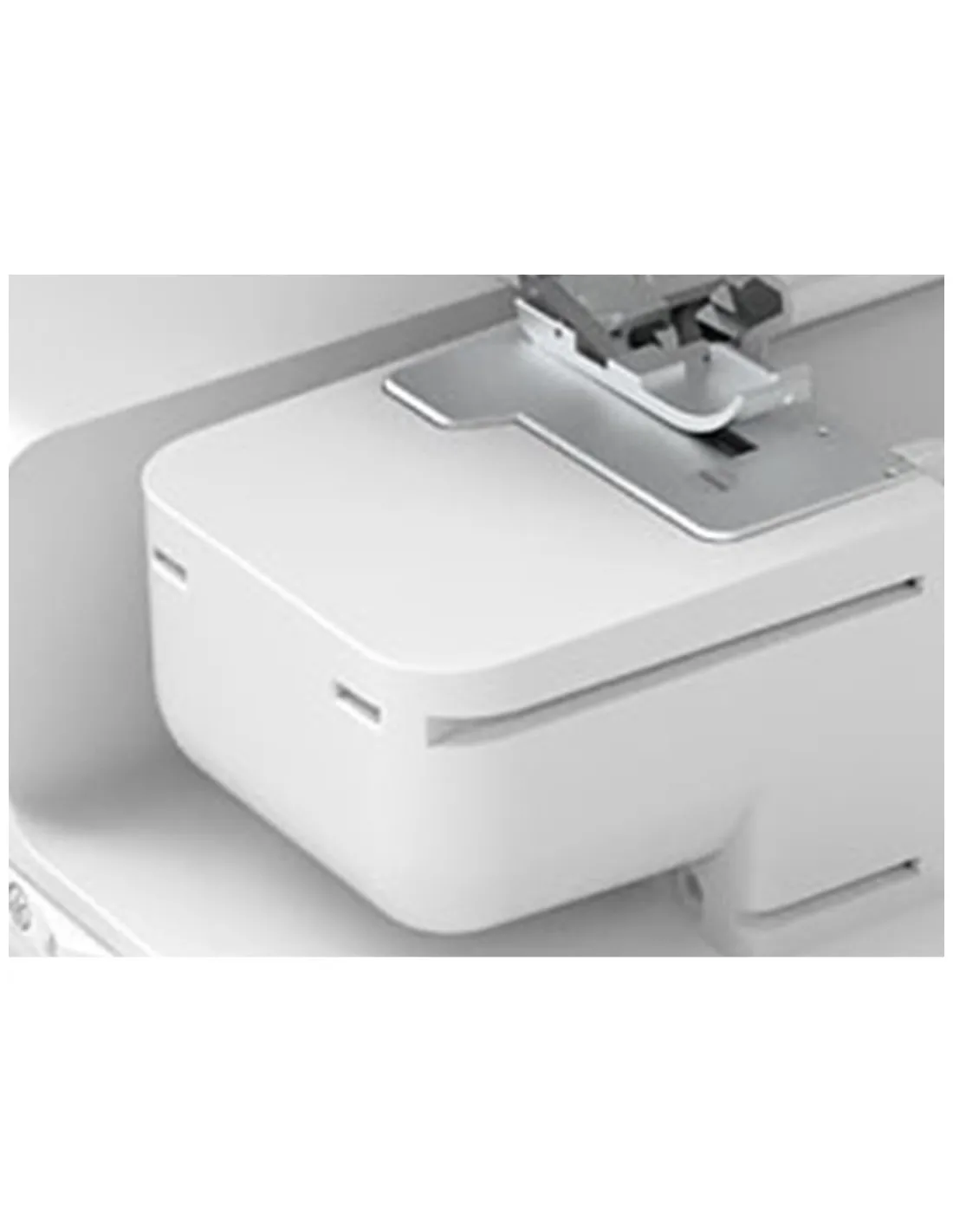 Para terminar cualquier prenda tubular como cuello, fuseau, puños o sisas, simplemente retire el soporte y transforme la máquina en una remalladora de brazo libre, lo último en comodidad.