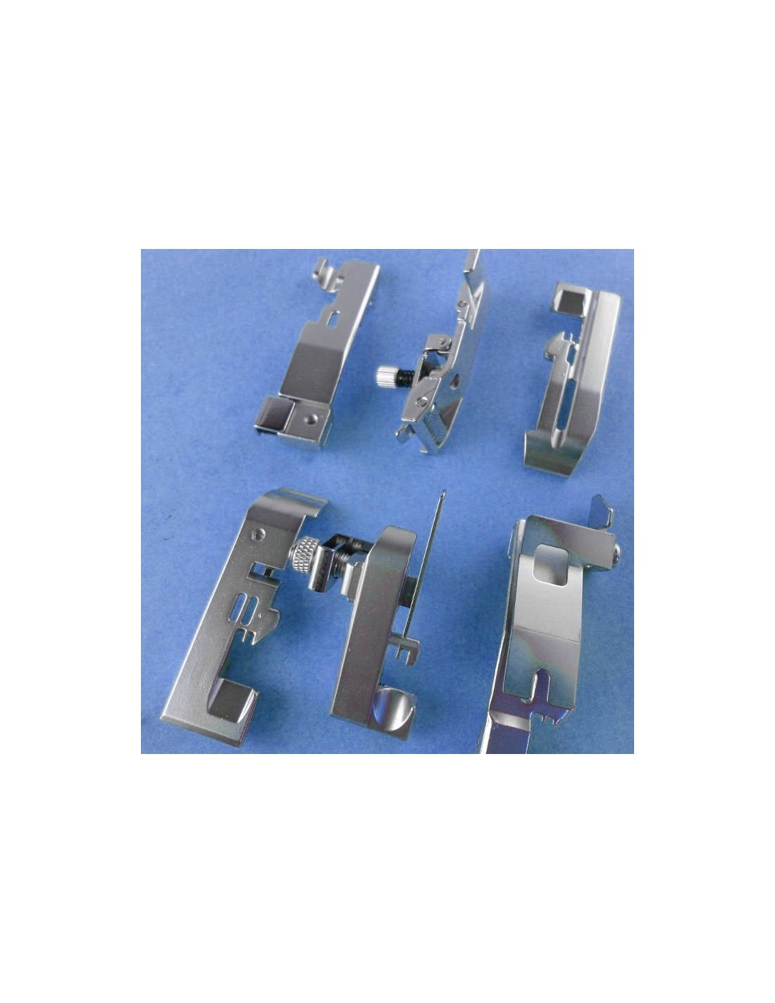 Set accesorios para remalladora Juki Mo-50E con 6 pies para todas las operaciones posibles con instrucciones visuales detallados. Fruncir, aplique un cordón, inserte elástico, cintas y bolas se convertirán en fácil y rápida, con resultados profesionales.