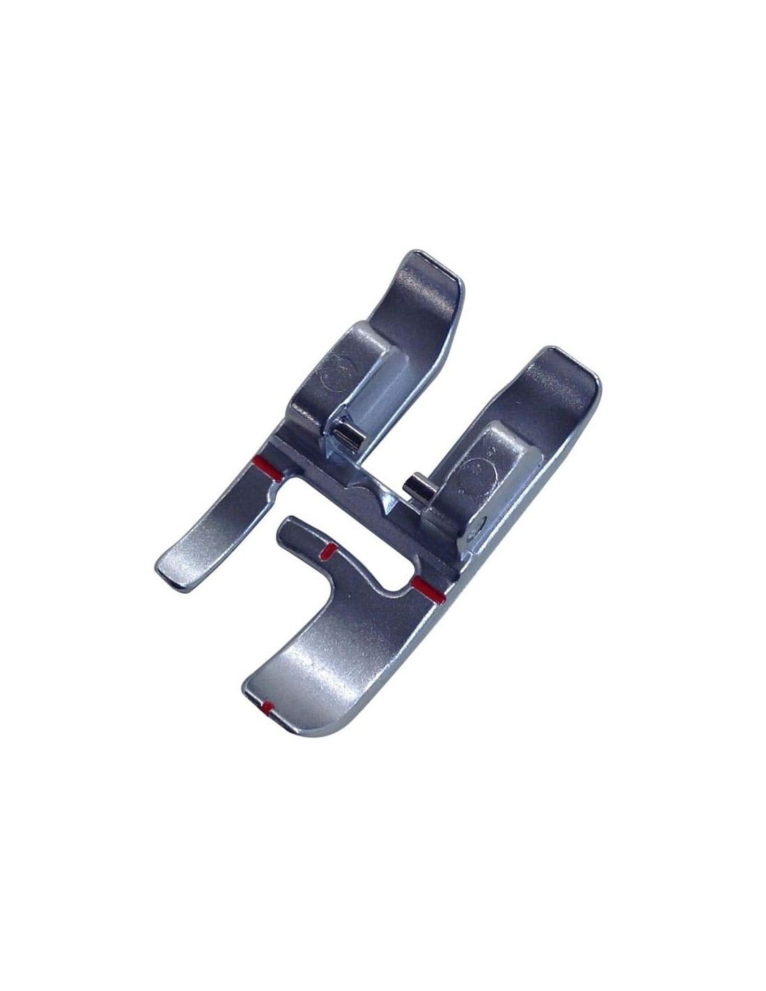 El pie compensador o de dos niveles para máquinas de coser Pfaff con sistema IDT es ideal para costuras en el borde de los tejidos, ya que el paso permite guiar la tela y obtener costuras perfectamente lineales.