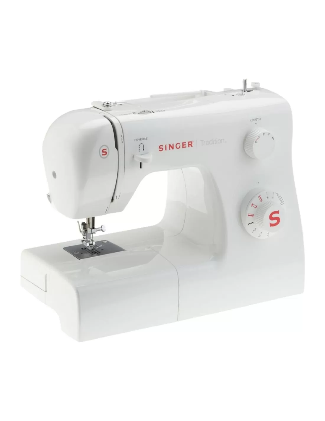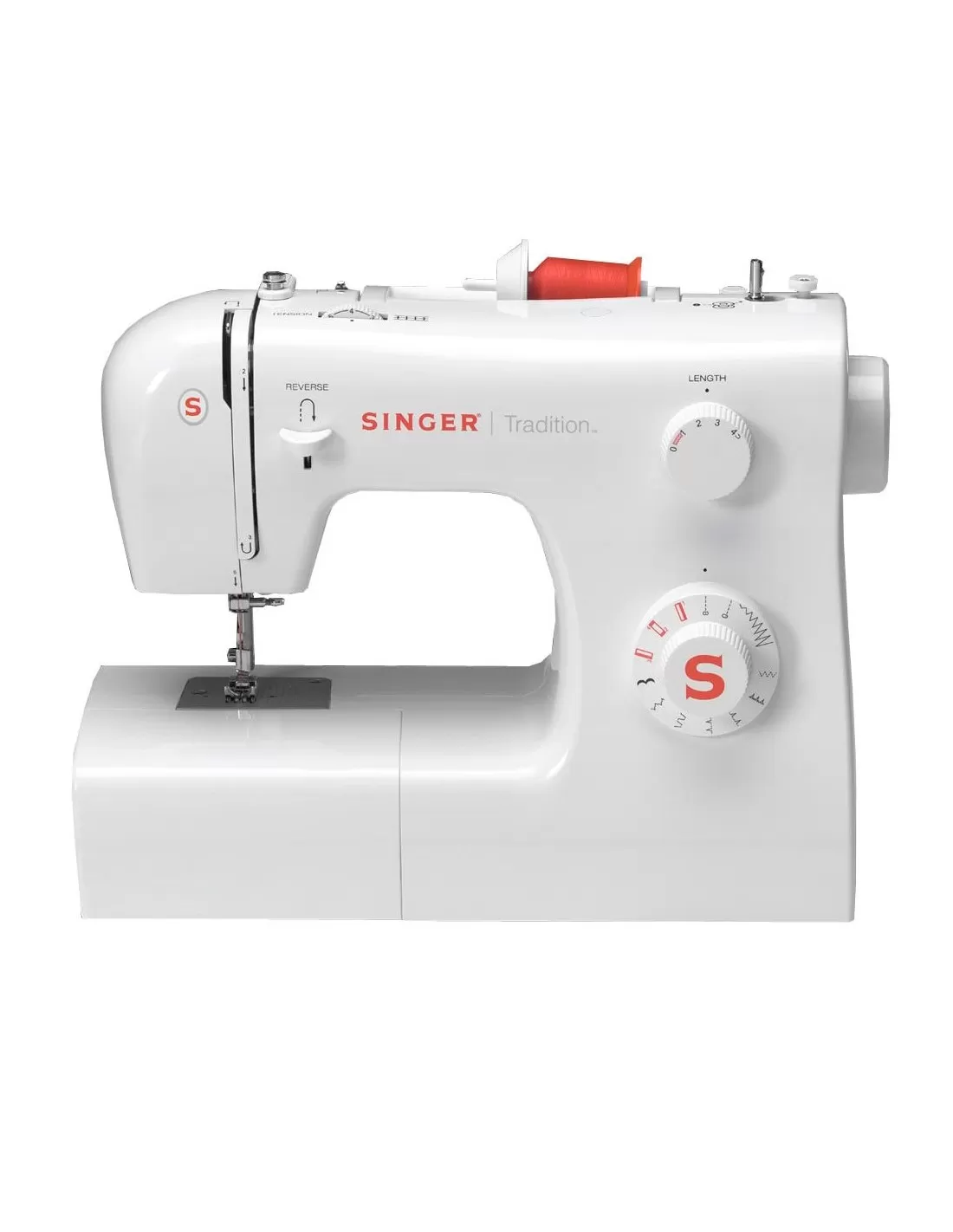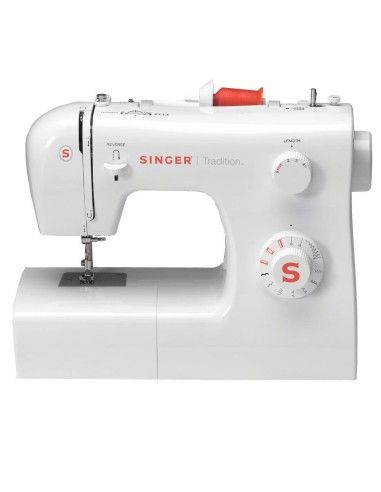La máquina de coser Singer Tradition 2250 es una mecánica automática versátil y ligera, con un asa retráctil para facilitar su transporte.