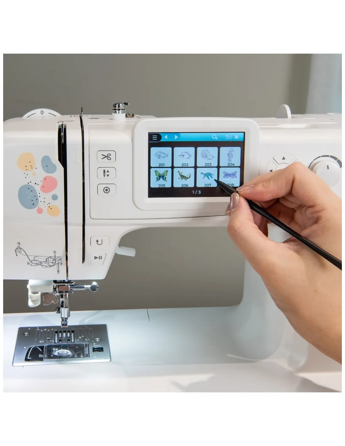 Conçue avec une esthétique attrayante par Eleonora Galvagno, cette machine est non seulement belle à regarder, mais inclut également une collection de motifs de broderie exclusifs créés par Eleonora elle-même.