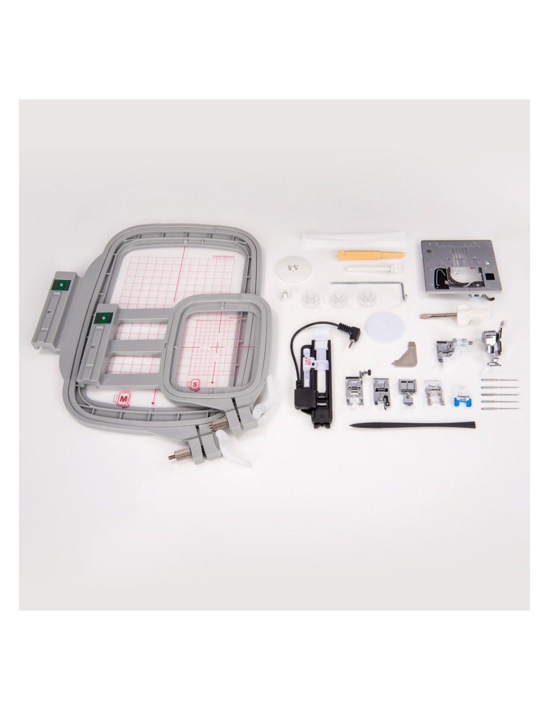 - DVD (logiciel, vidéo d’exploitation, instructions et 100 motifs de broderie)