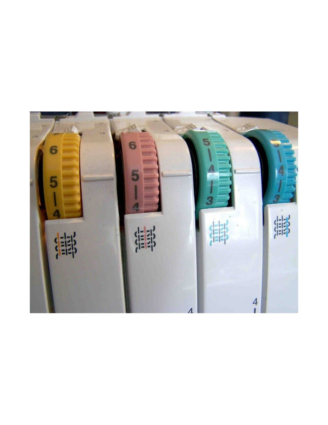 Nous l'expédions déjà enfilé avec 4 grands cônes de fil surjeteuse afin que vous puissiez immédiatement vous familiariser avec lui dès la sortie de la boîte.