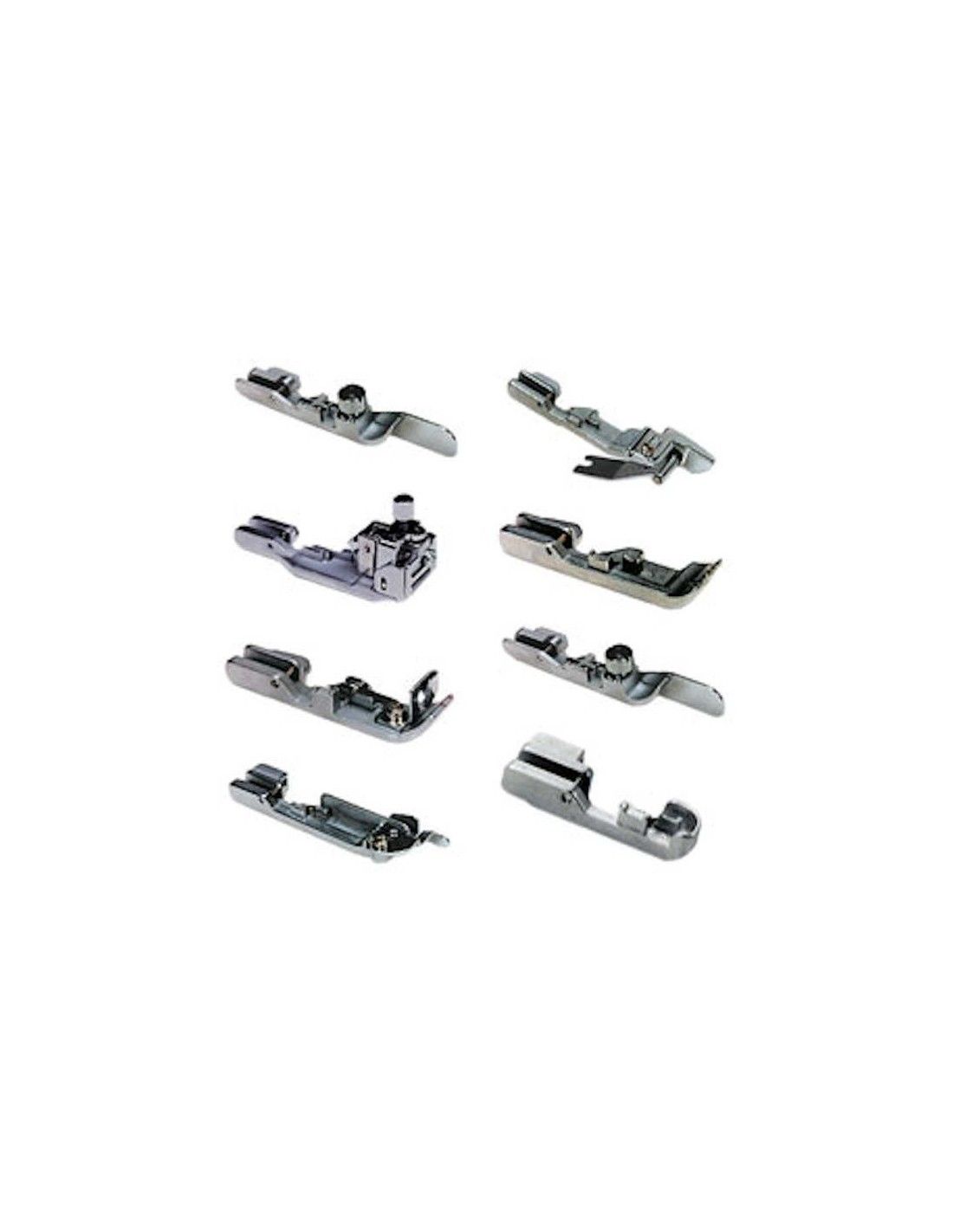 Le pied multifonctionnel spécial avec guide réglable vous permet d’appliquer des élastiques et des rubans sans autres accessoires.