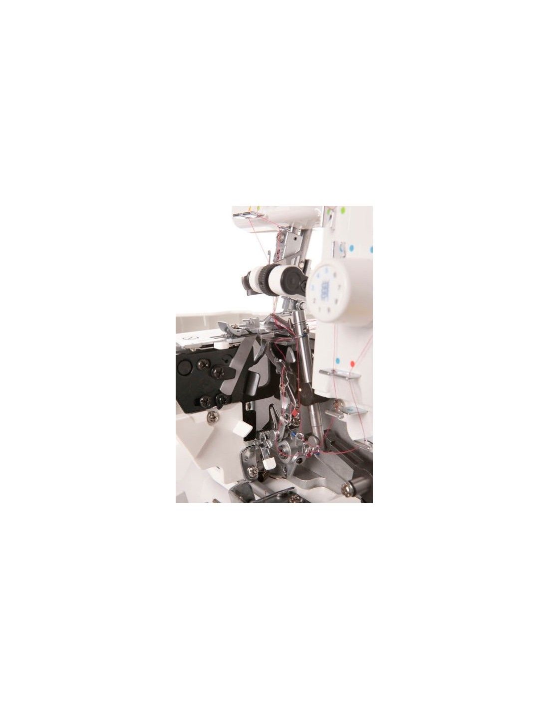 Avec cette machine overock Juki vous pouvez développer et améliorer votre couture et suivre les dernières tendances de la mode peut-être en utilisant des fils décoratifs avec les pieds optionnels du kit de Juki.