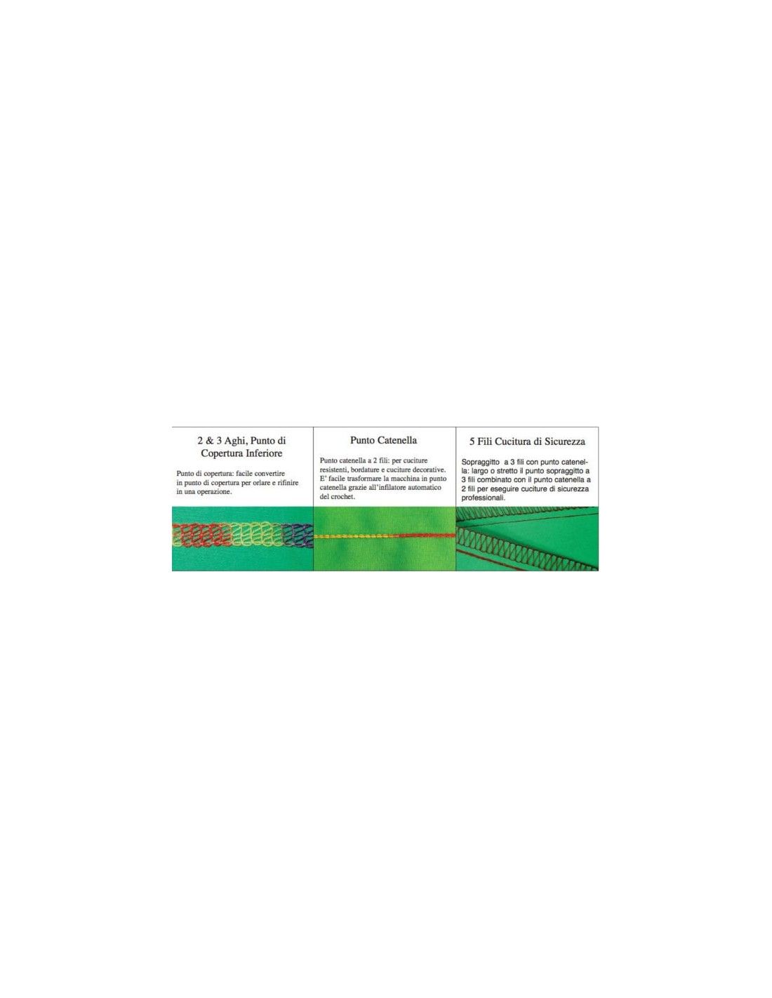 Vous pouvez affiner les tissus de toutes sortes, de la lumière à lourd et même le plus difficile à transporter, effectuerl’orline roulée,le point de chaîne,la couture de sécurité à 5 brins et le point de couverture d’aiguille 2 ou 3 aussi pour les sous-vêtements et maillots de bain.