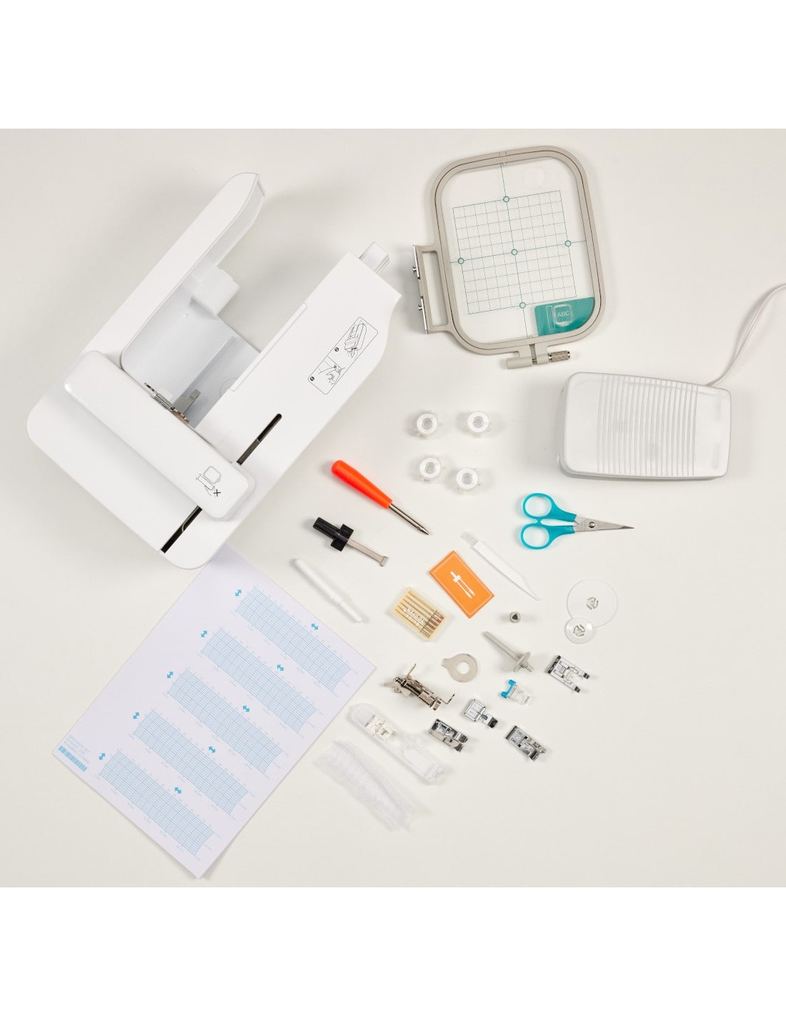 Installez simplement l'unité de broderie et le cercle, sélectionnez le motif et commencez à travailler. D'autres cadres sont disponibles séparément.