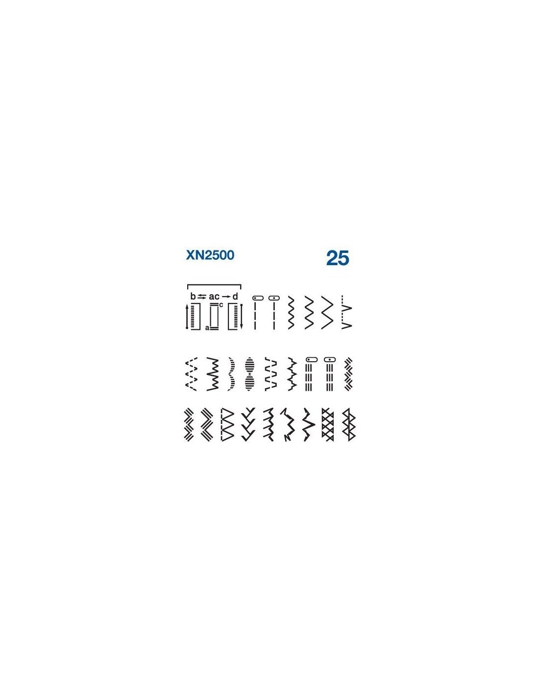 Le XN2500 comprend des points de base tels que la couture droite, zigzag normal et celui cousu sur la diagonale, points élastiques pour les tissus extensibles, coutures décoratives et bien sûr la fente entièrement automatique.