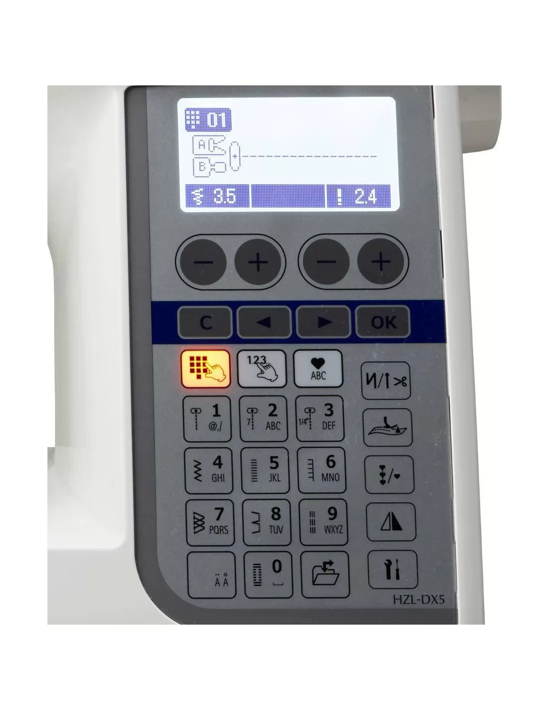 La machine à coudre professionnelle Juki HZL-DX5 vous offre une sélection rapide et facile des 10 programmes de couture les plus utilisés et des résultats de qualité vestimentaire.