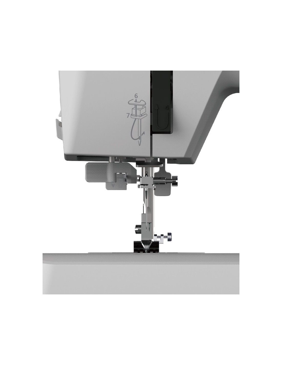 La pression du pied est également réglable par la commande pratique placée directement au-dessus de la barre pré-bouton et le rend plus facile à coudre les tissus les plus disparates, tels que les étirements ou très délicats.