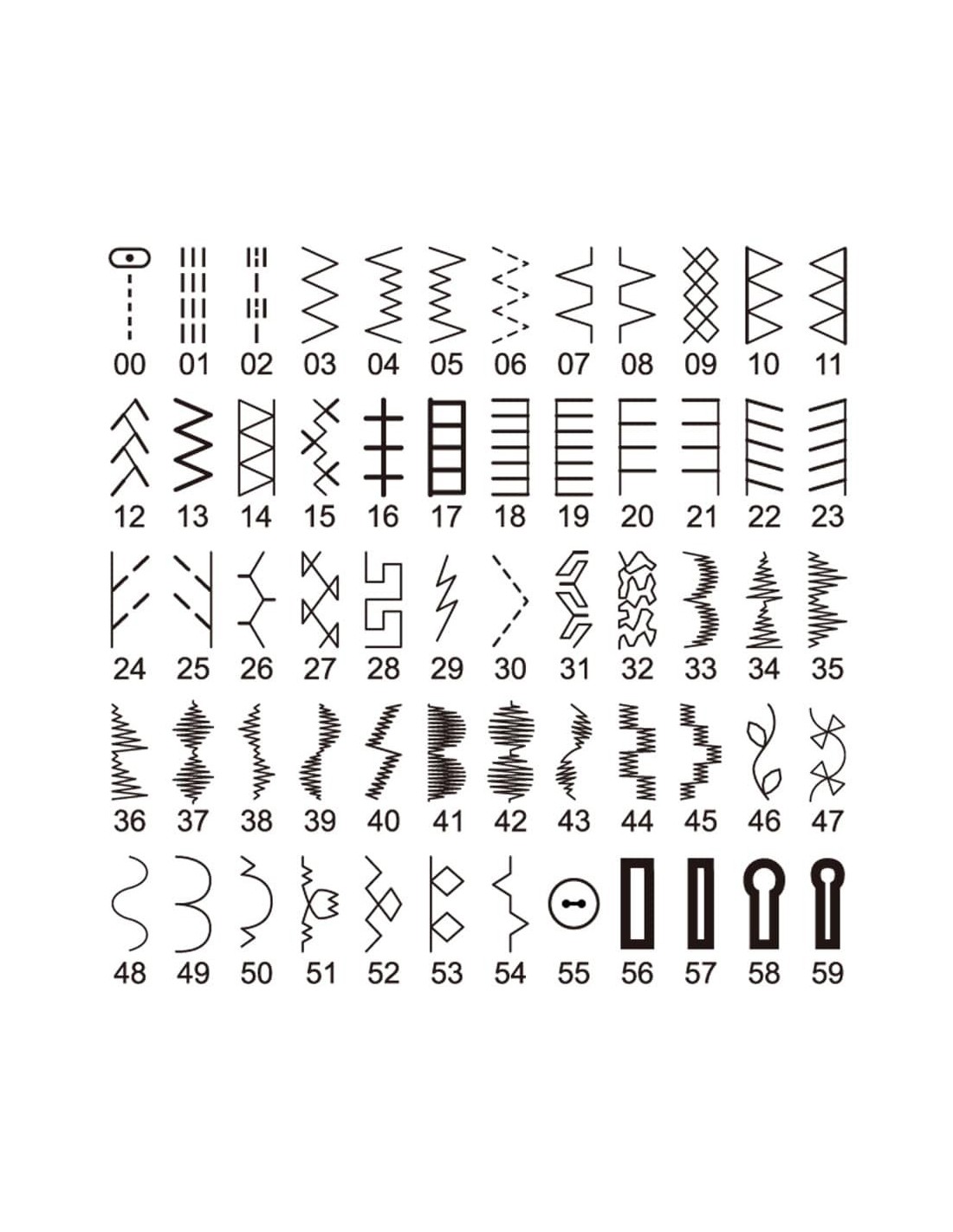 Structure en métal - Insertion automatique - Écran lcd - Réglage numérique de la longueur et de la largeur des points - 4 œillets automatiques 1 fois - 60 points utiles - Clé de couture arrière facilement accessible - Lumière LED