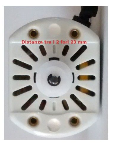 Le moteur des machines à coudre domestiques peut être monté à la fois sur des supports avec des trous horizontaux (distance d’environ 23 mm) et sur ceux avec des trous diagonales avec une distance entre les trous d’environ 53,5 mm.