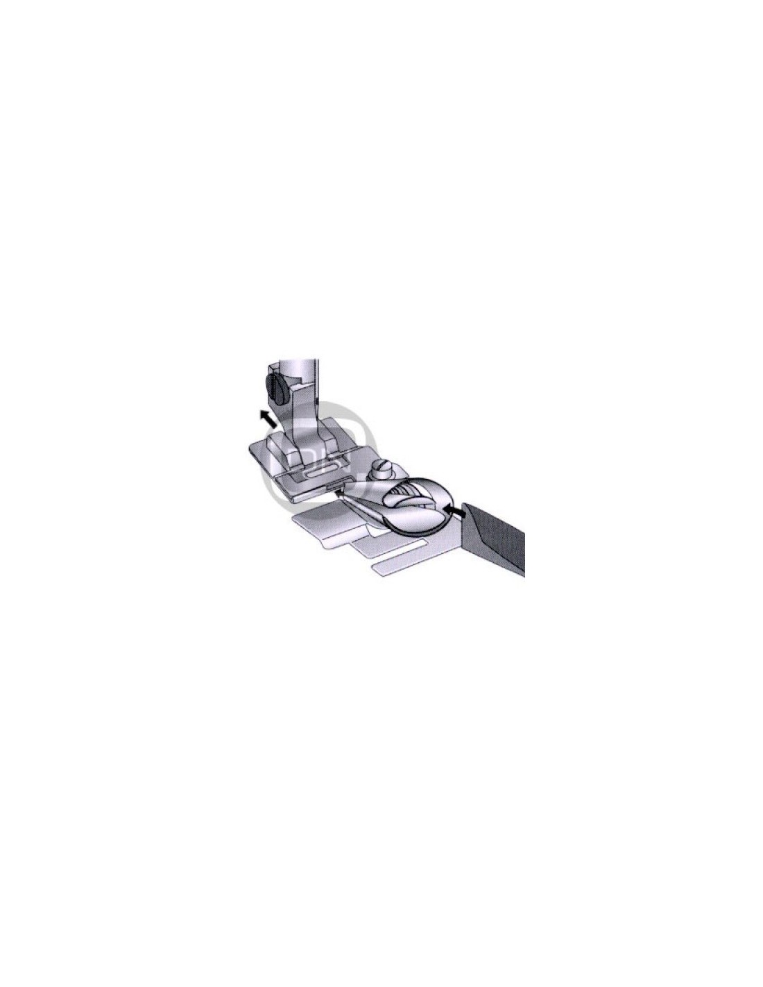 Ce pied de bord vous permet d’appliquer une bande de tissu sur le bord du tissu tout en tordant les bords de la bande de sorte que vous obtenez un bord fini avec une seule couture.