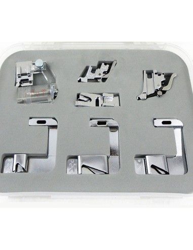 Ce kit contient 7 pièces et convient à toutes les machines à coudre et vous permettra de faire des ourlets professionnels avec double revers du tissu et la bordure avec des rubans et déballer vos vêtements.