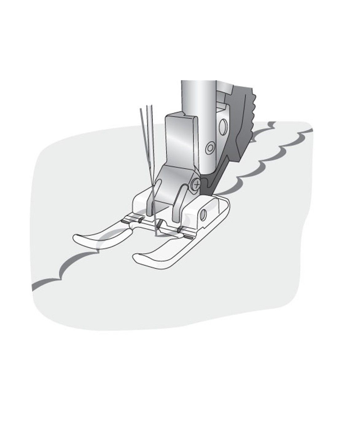 La goupille ouverte pour les applications et les décorations vous permet de voir le travail tel qu’il est effectué, vous permettant une meilleure visibilité et un contrôle de couture maximum. Idéal pour les appliques, les broderies et les coutures avec l’aiguille jumelle d’une touche de créativité à votre machine à coudre Pfaff. Pour obtenir un effet « cousu à la main », sélectionnez un point de coquille.