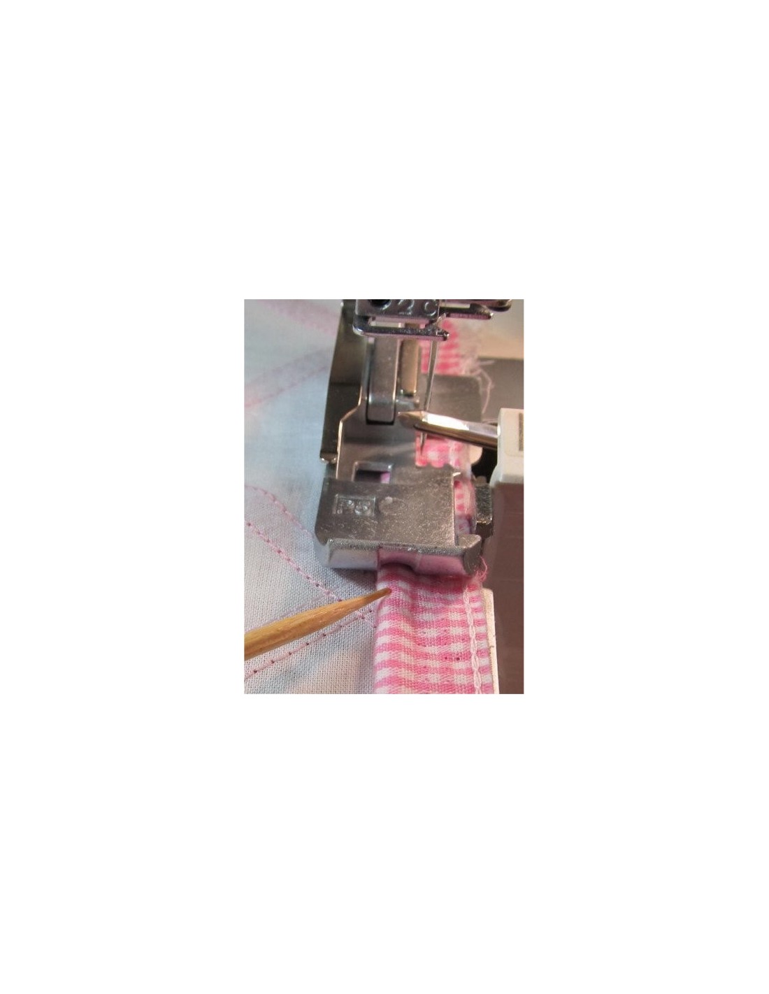 Le pied élastique vous permet d’attacher l’élastique au tissu en appliquant (via la vis de réglage) une tension constante.