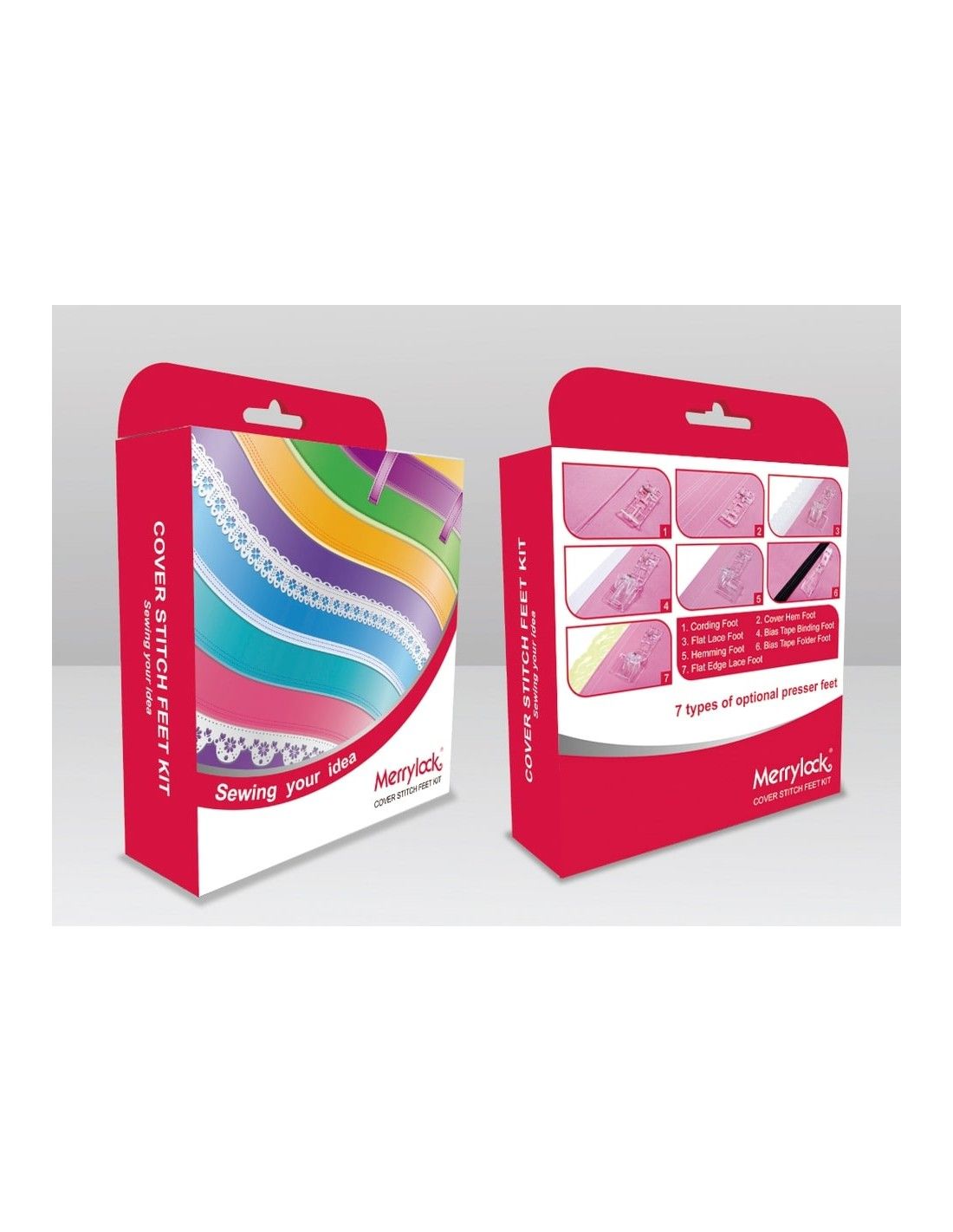 Ce kit de 7 pieds pour machines recouvreuses est spécifique pour Singer 14T968, Singer 14T970, Pfaff Coverlock 3.0/4.0, Husqvarna-Viking Huskylock S21/25 et Necchi 4055.