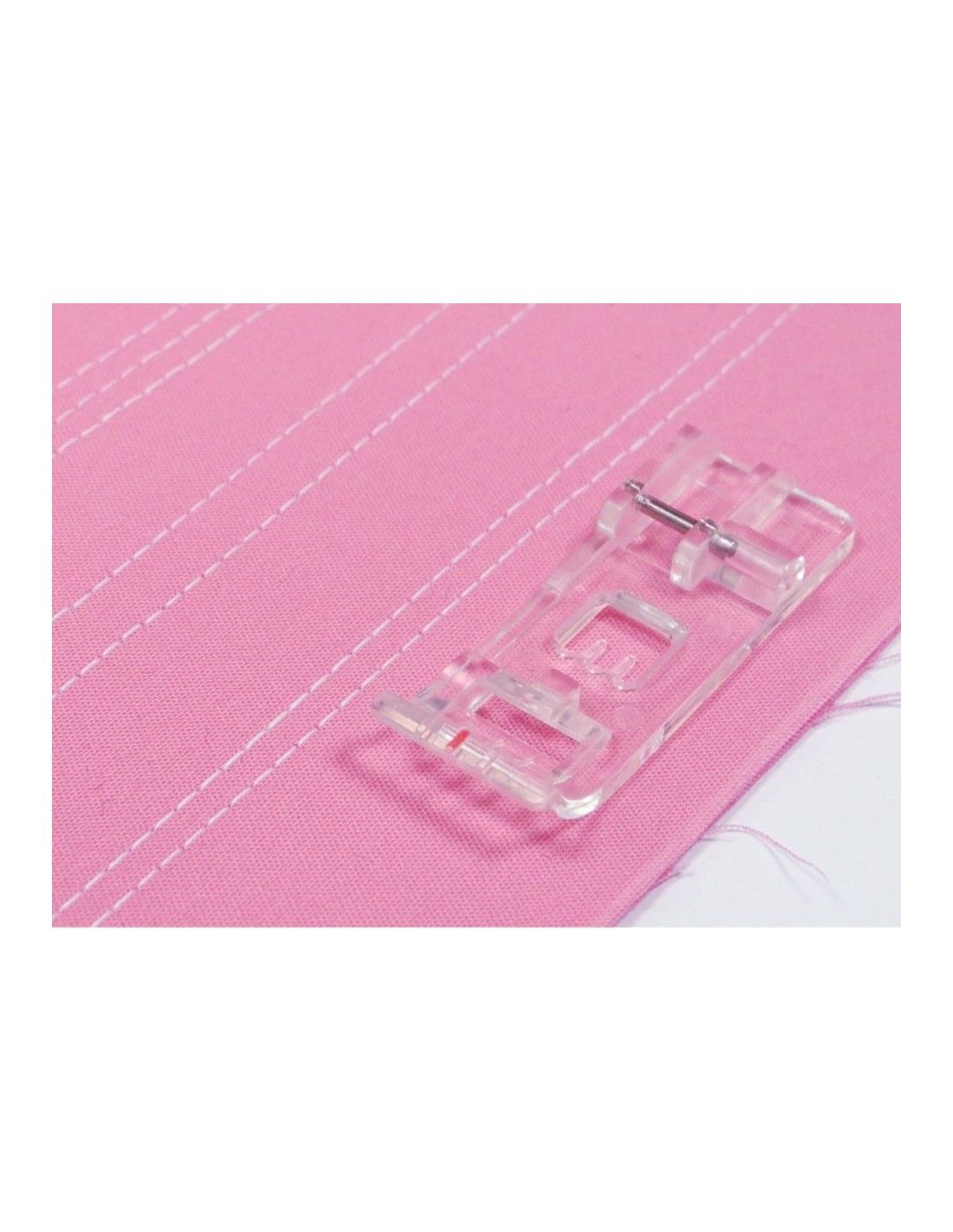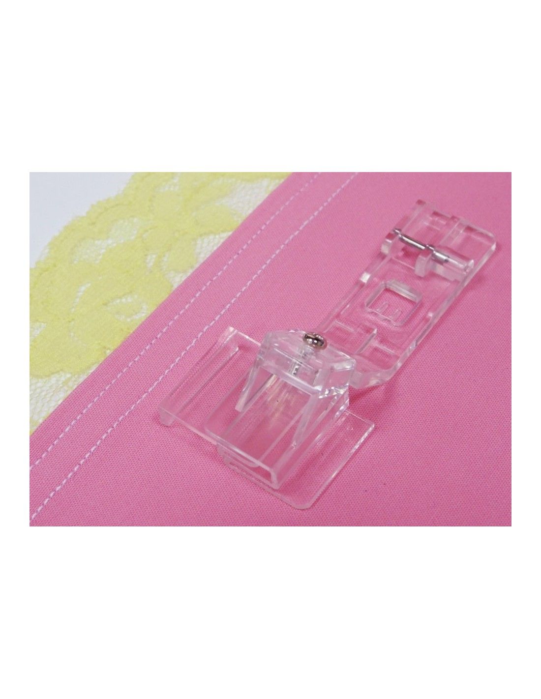 Utilisez le pied transparent pour augmenter la visibilité pendant que vous cousez, créez des bords décoratifs et des effets fabuleux avec le pied pour reliure et pliage de bord et le pied pour dentelle à bord plat.