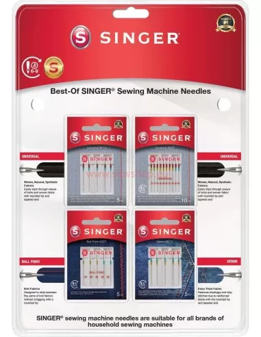 Gli aghi universali sono adatti per tessuti di diversi spessori e lo spessore 90 è indicato per tessuti spessi.