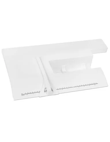 Questo piano o tavolo allungabase con guida regolabile è progettato specificamente per le macchine da cucire Pfaff serie Creative, Performance ed Expression, si monta facilmente come la scatola porta-accessori e aumenta notevolmente l'area di lavoro.