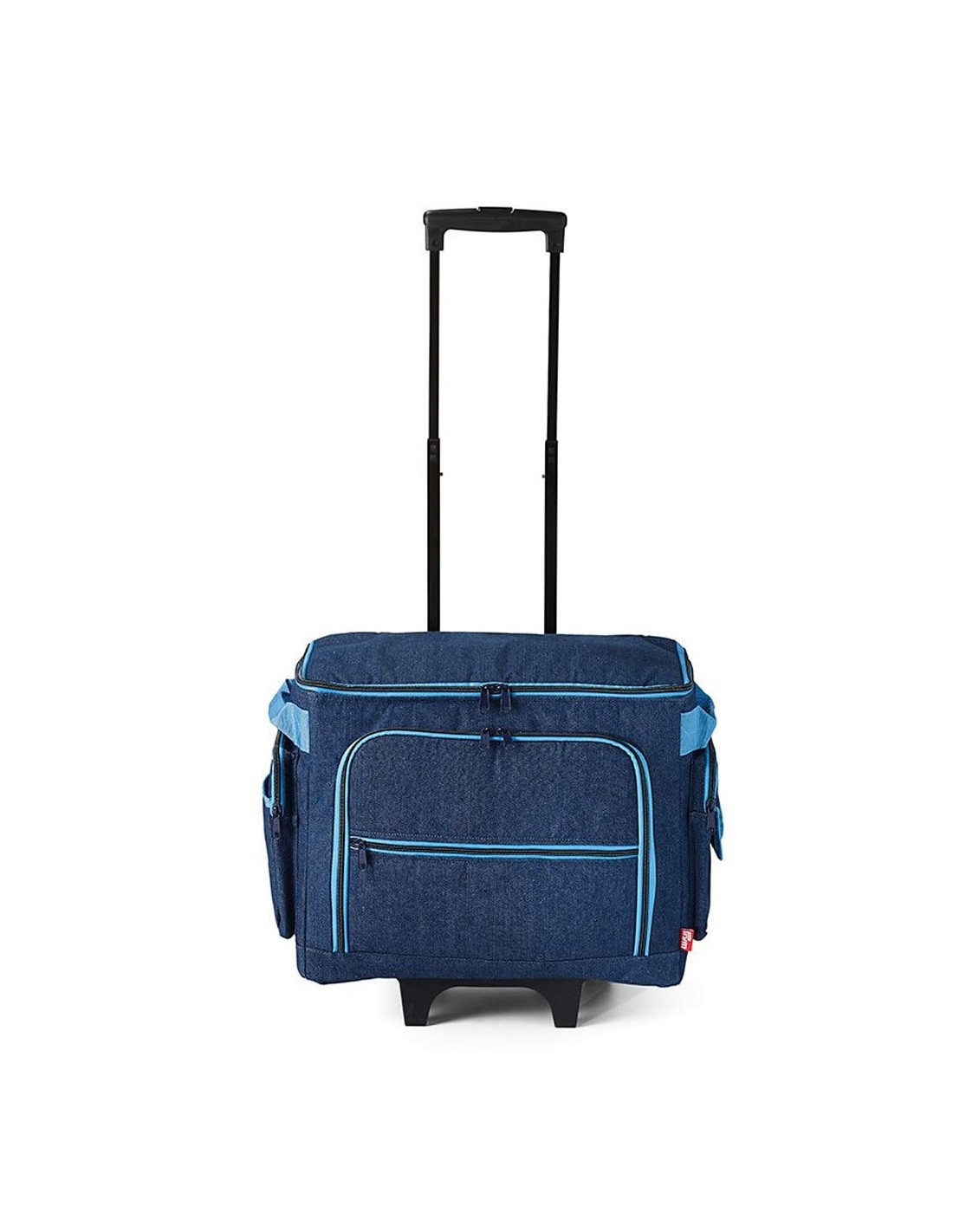 Valigia trolley per macchine da cucire in poliestere idrorepellente color jeans con le seguenti caratteristiche: