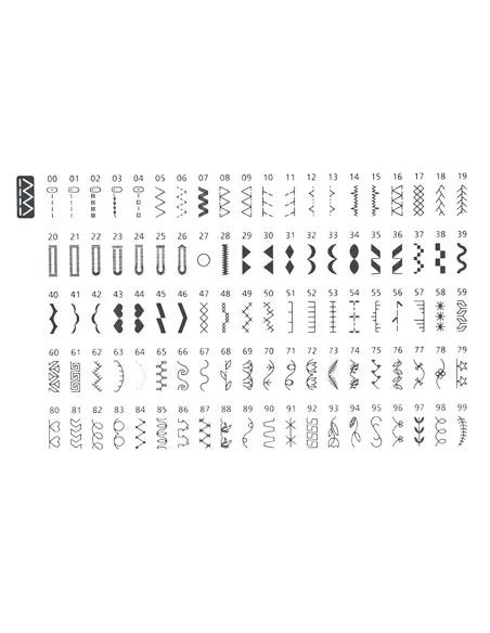 oltre alle cuciture basilari trovi punti elastici, punti di rifinitura tipo overlock, 18 punti satin, 4 punti croce, 7 punti quilt e 40 punti decorativi.