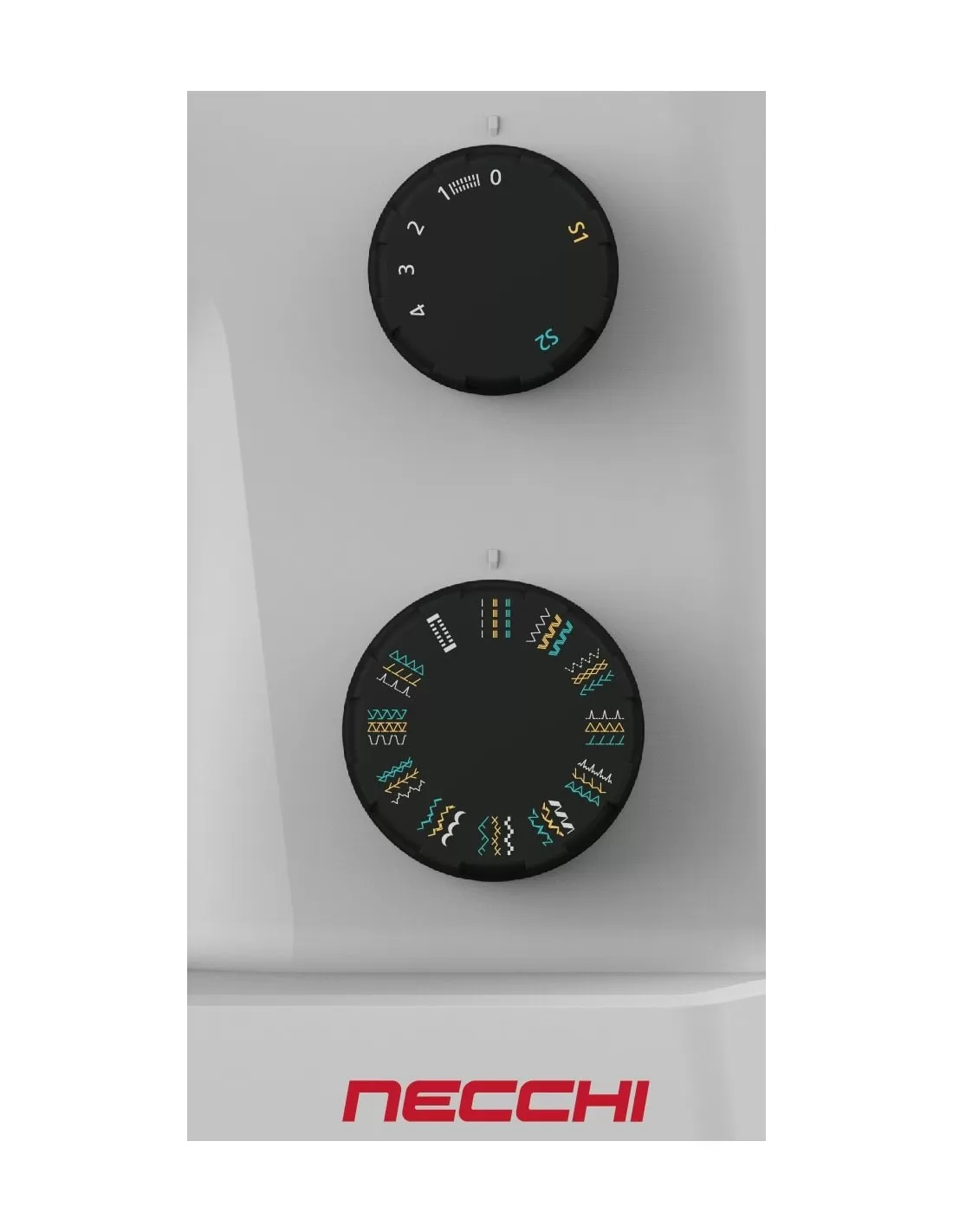 Il colore grigio chiaro del rivestimento con manopole e parte superiore antracite dona alla Necchi Q132A un'eleganza non comune.